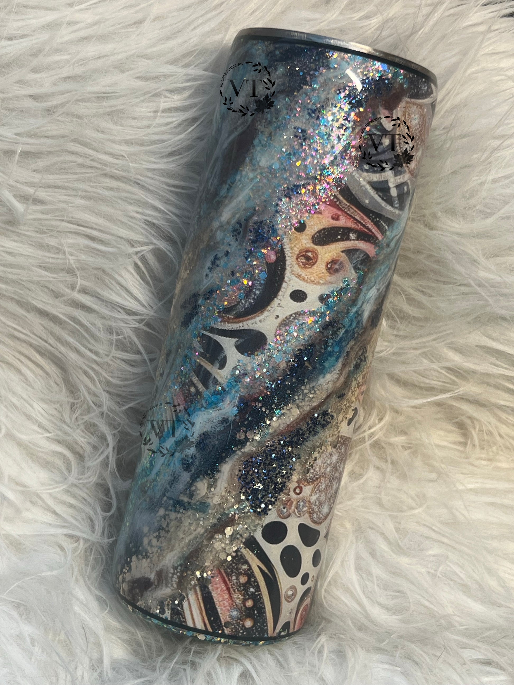 Stand out with this quirky and playful 30 oz skinny stainless steel tumbler featuring a colorful leaf feather design accented with chrome and foil. With its rivet-like texture and unique opal effect, this statement piece is perfect for both hot and cold drinks. Hand wash only for maximum longevity.