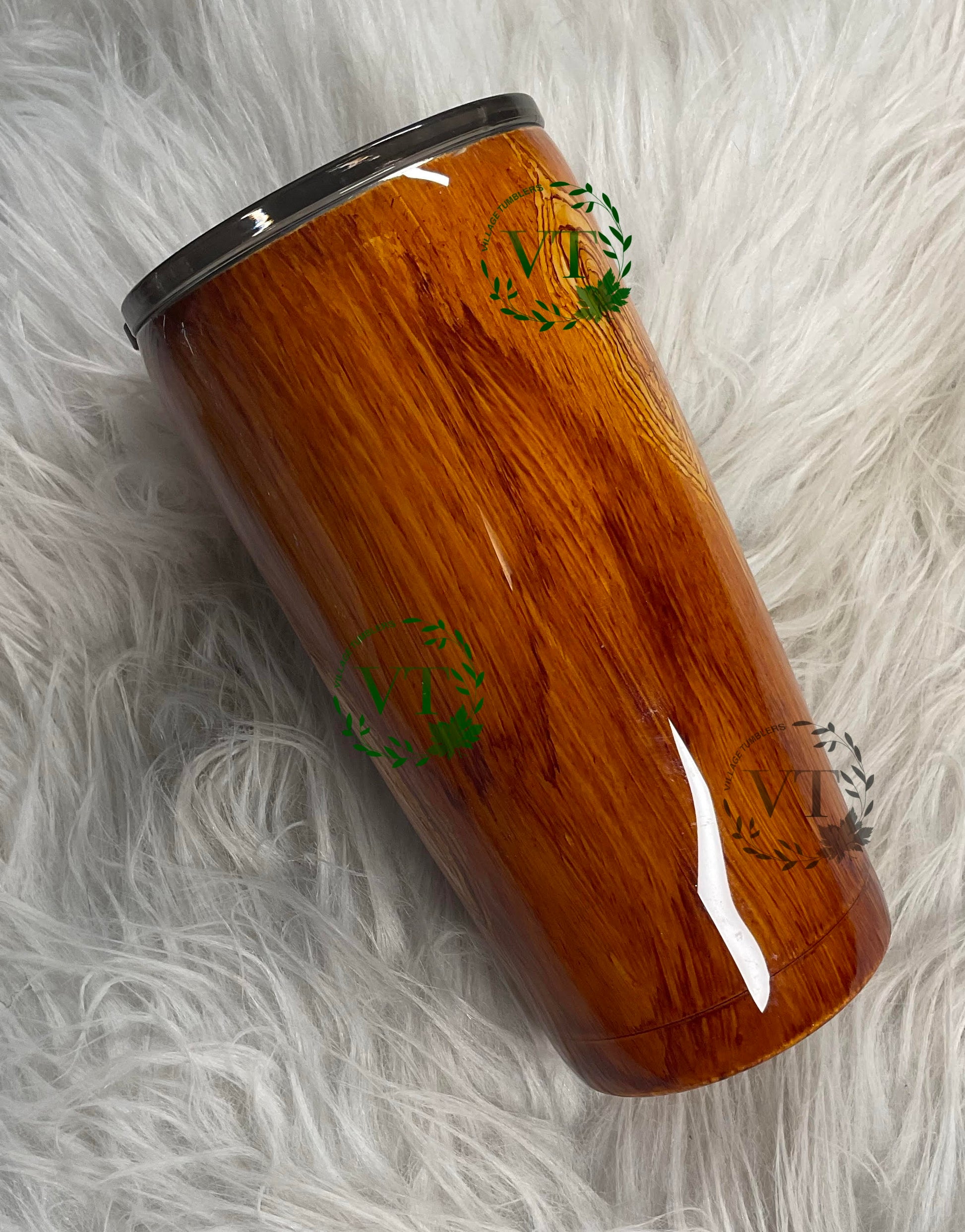 Embrace the outdoors with our 20 oz woodgrain stainless steel tumbler. Featuring a majestic buck and suitable for both hot and cold drinks, it's the perfect gift for any man.