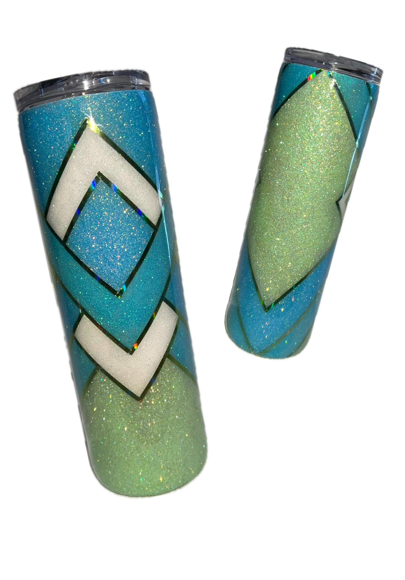 Spice up your drinkware collection with our Glitter Template! This stainless steel tumbler holds 30 oz and features a dazzling design of blues and light green glitters. Keep your drinks at the perfect temperature in style. Absolutely stunning and perfect for hot or cold beverages. Get yours today!