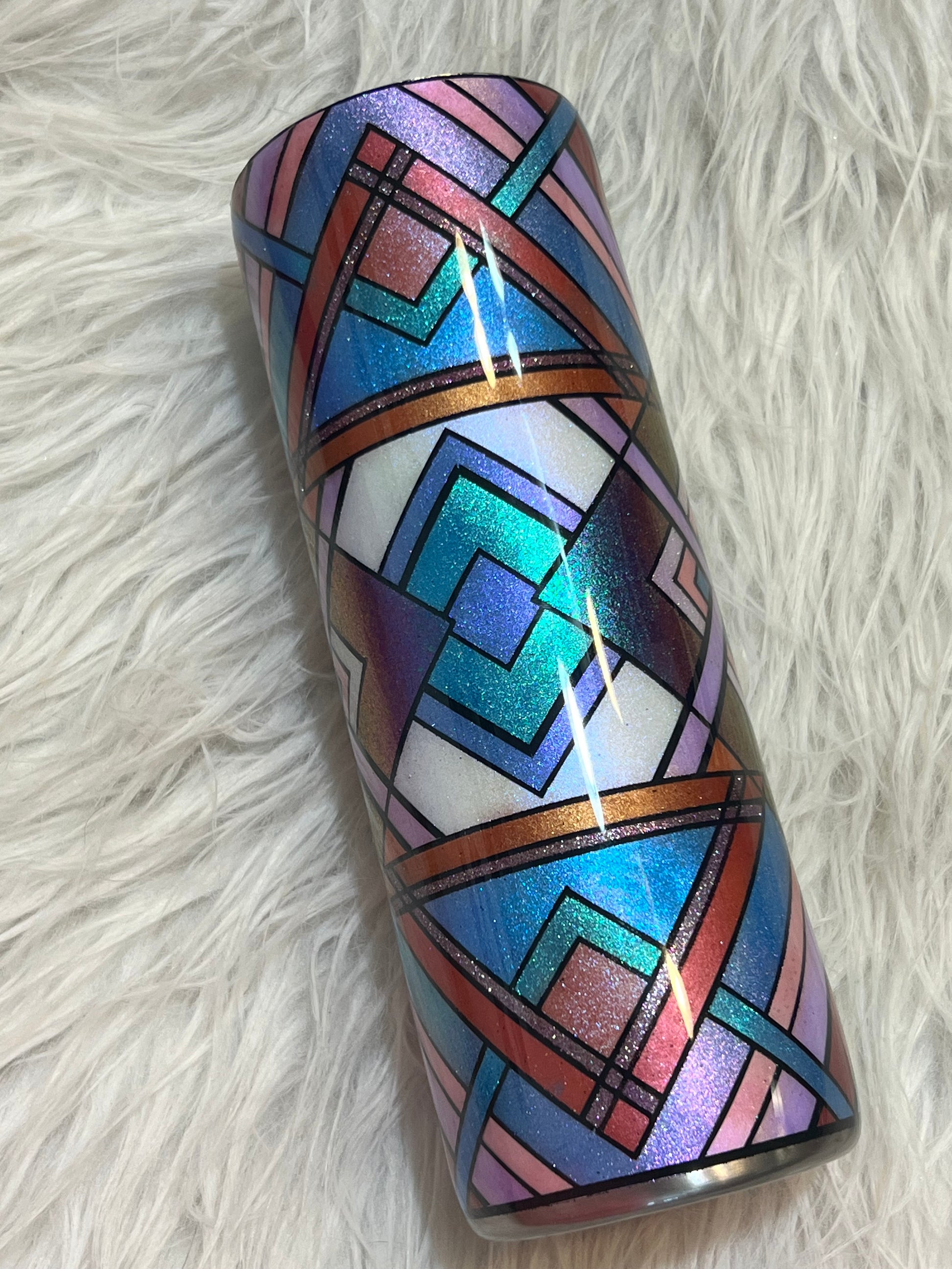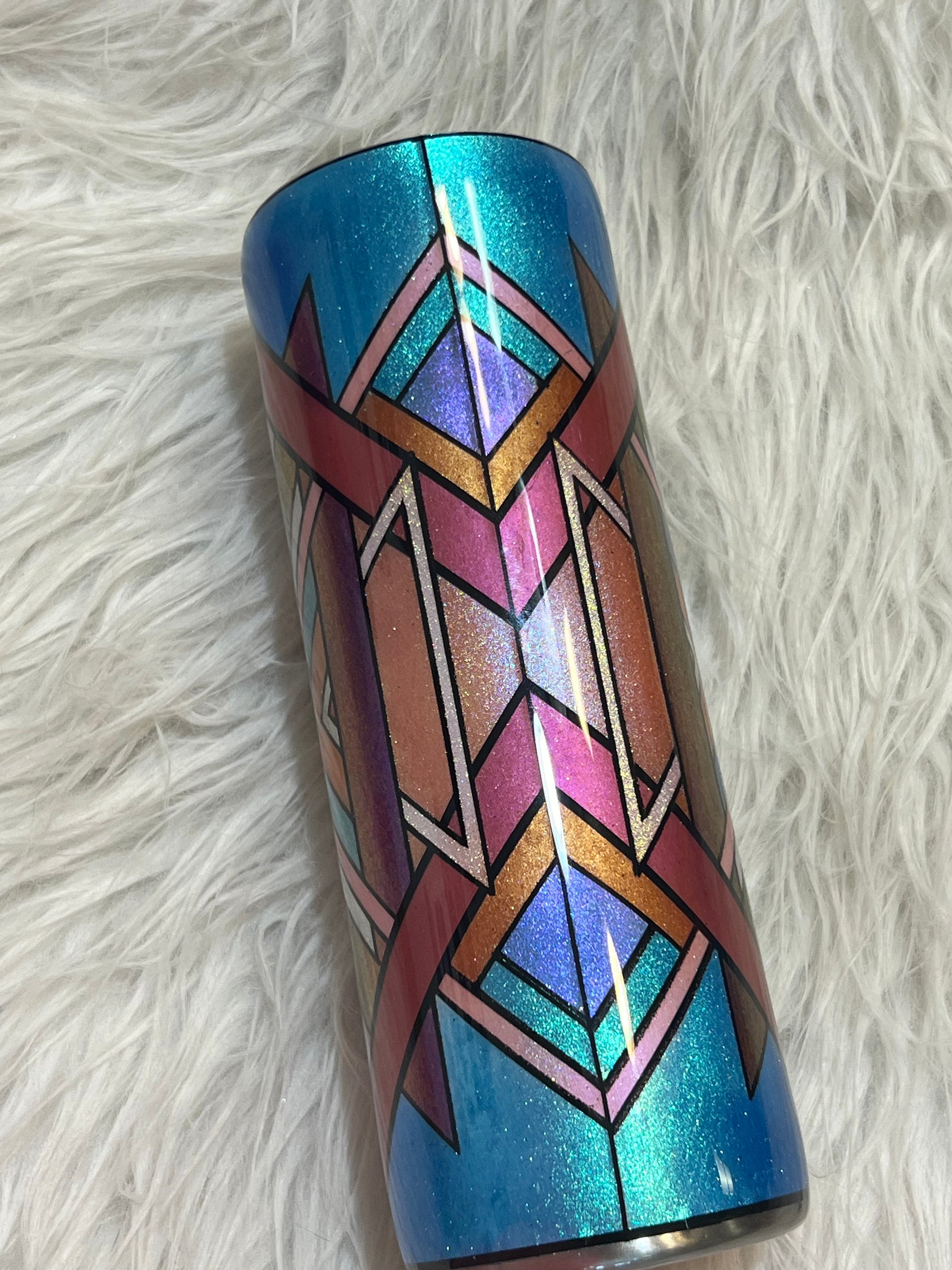 Introducing the New Chrome design! Keep your beverages hot or cold with two lids - one for hot drinks and one with a flip top spout and straw for cold drinks. The stainless steel construction is both durable and stylish, featuring a stunning abstract design. Sip in style!