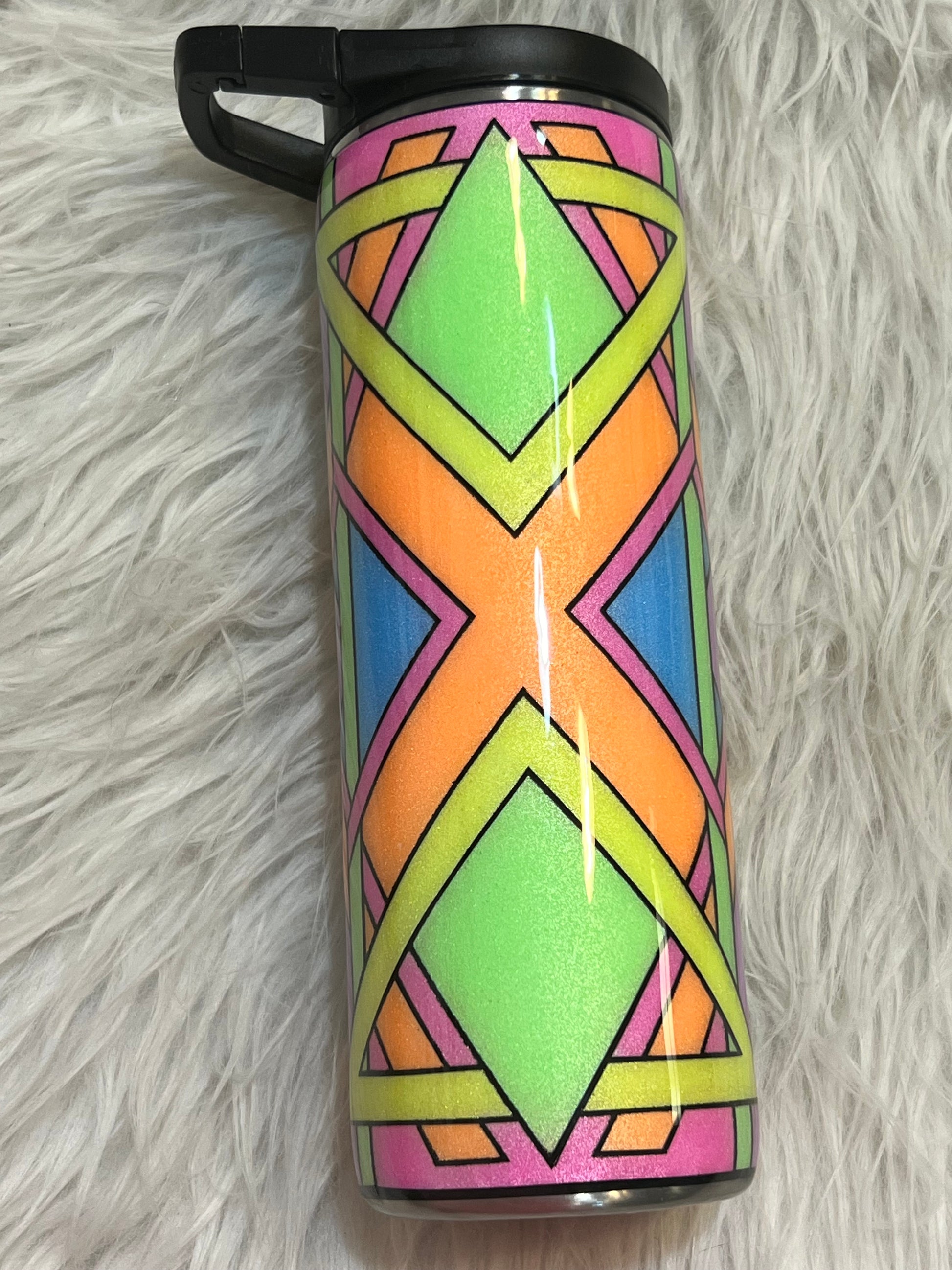 This 20 oz stainless steel duo comes with two lids: one for hot beverages and a flip-top lid with a straw for cold drinks. It boasts a super groovy design—apologies, but it had to be said! The bright colors are perfect for any beverage to brighten your day.