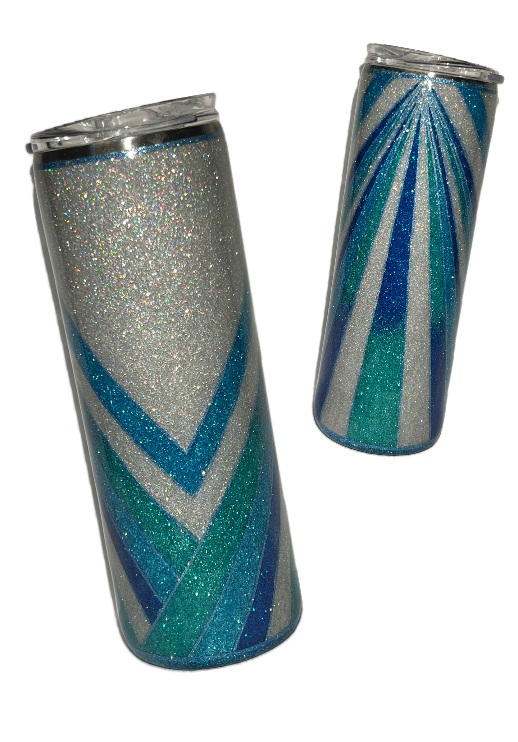 Quench your thirst with the Ringmaster template, a stainless steel tumbler that holds your hot or cold beverages with flair. The blue and green glitter design is enhanced with a touch of silver, making it a fun and stylish accessory. Perfect for a fun-loving, quirky individual like yourself!