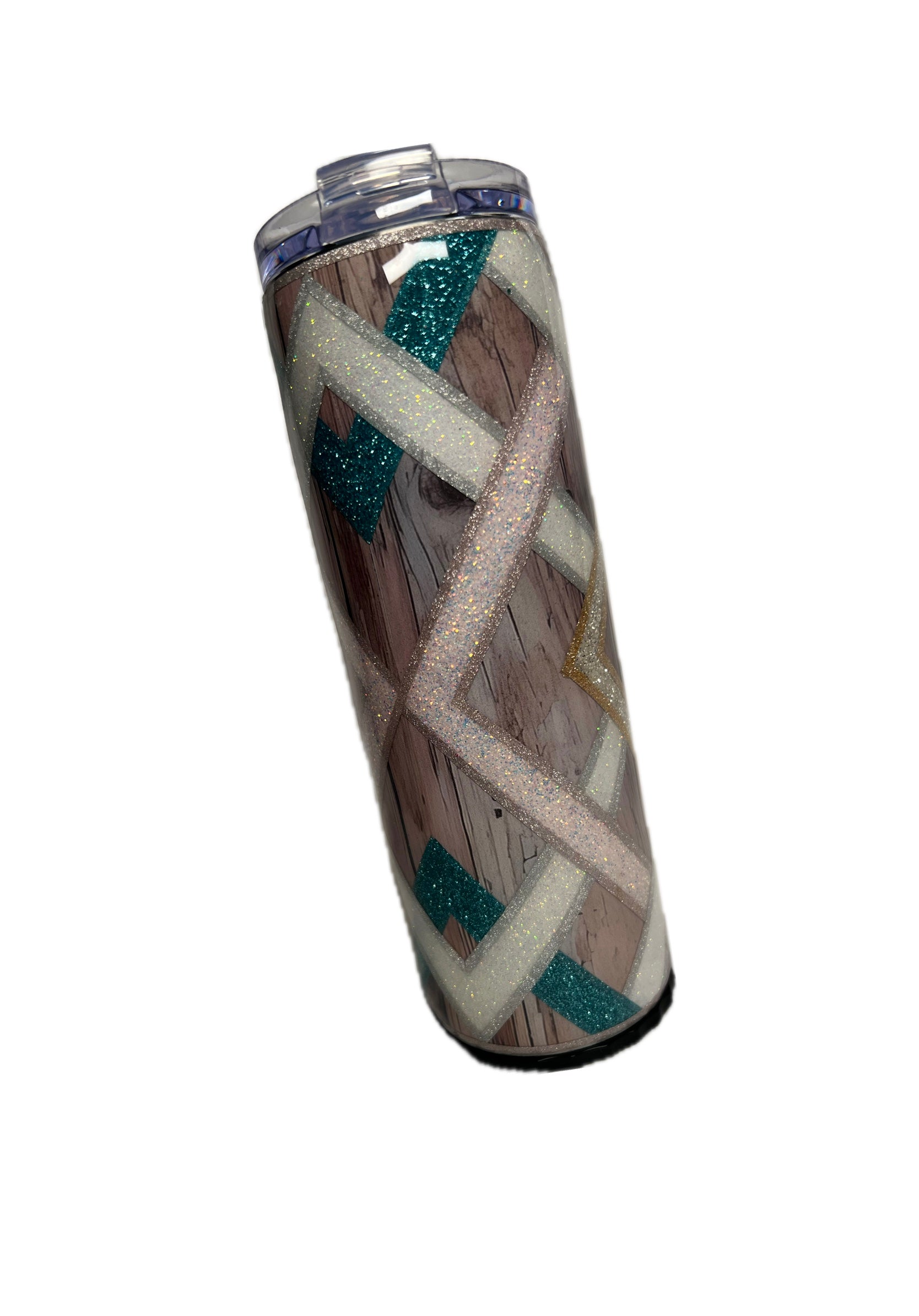Introducing the ultimate tumbler - the stainless steel strawbler! With a convenient bottom compartment to store your straw, this tumbler is perfect for hot or cold drinks. The wood grain vinyl design, accented with teal, pink, and white glitter, adds a touch of glam to functionality. Keep your drinks stylish and insulated with our vinyl with glitter tumbler.